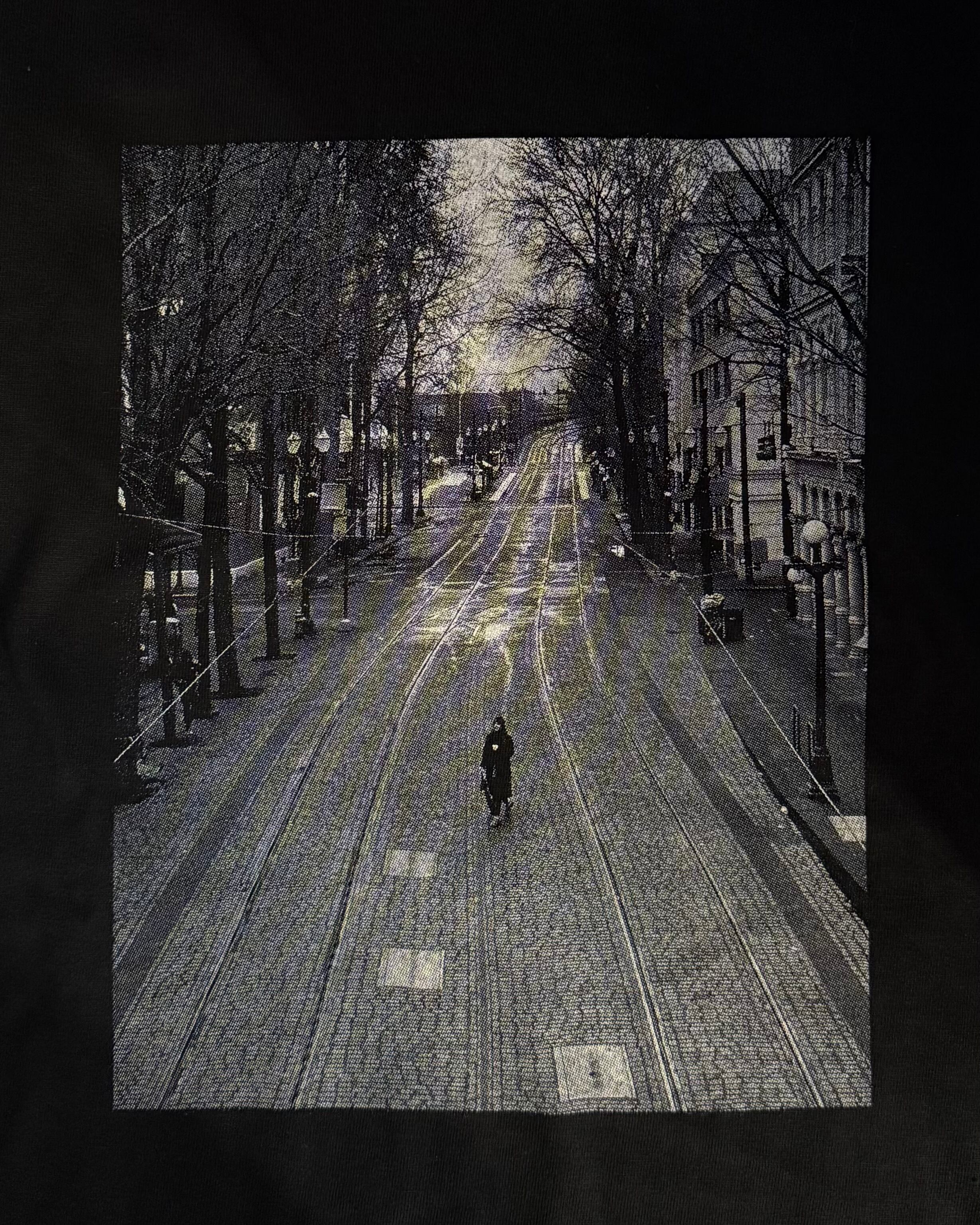 アメリカ、オレゴン州ポートランドの古い街並みを切り取ったフォトグラフTシャツ