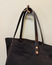 LEATHER STRAP TOTE BAG -BLK DENIM