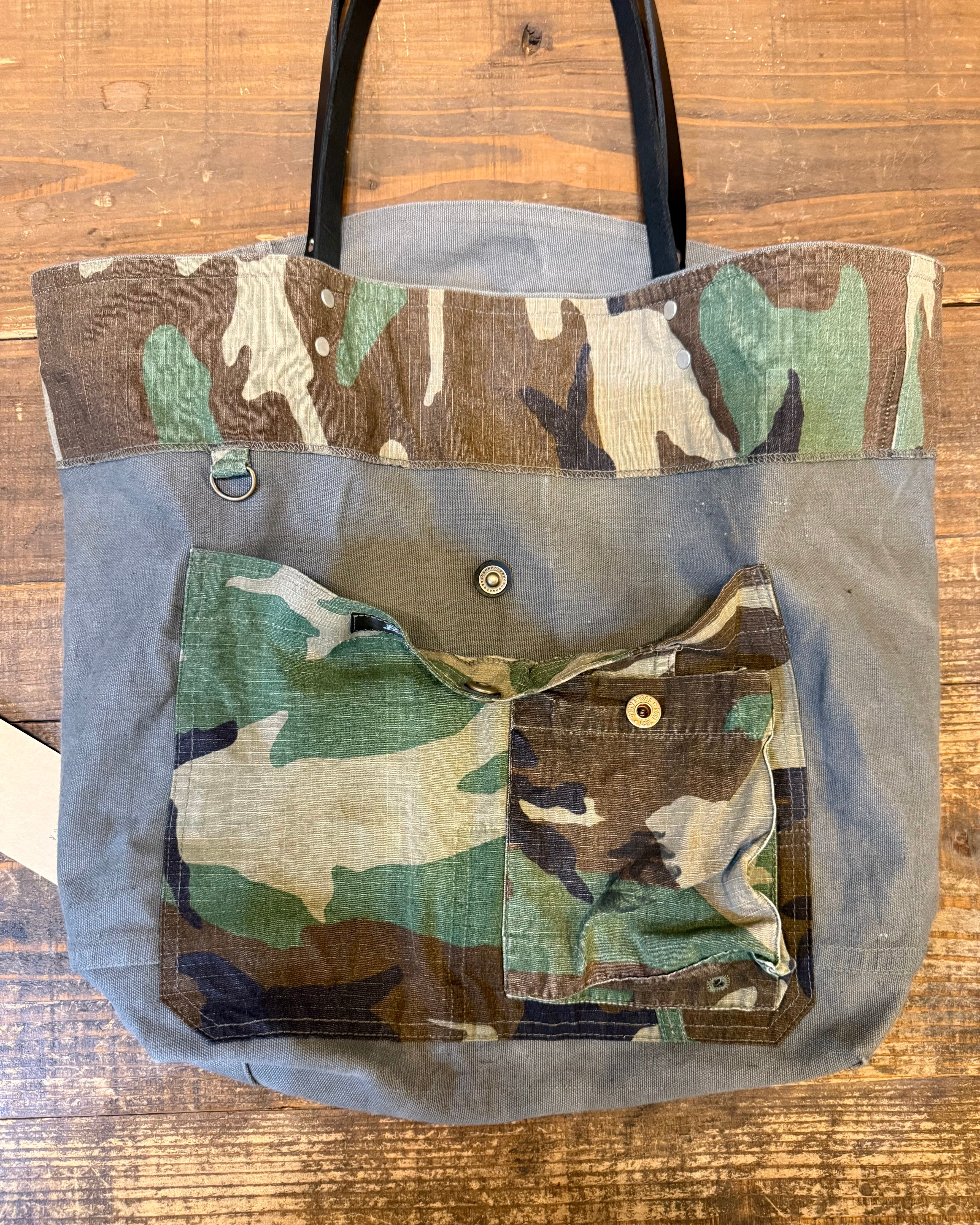 ヴィンテージのミリタリーダッフルバッグ(コットン100%)を解体して製作してトートバッグです。