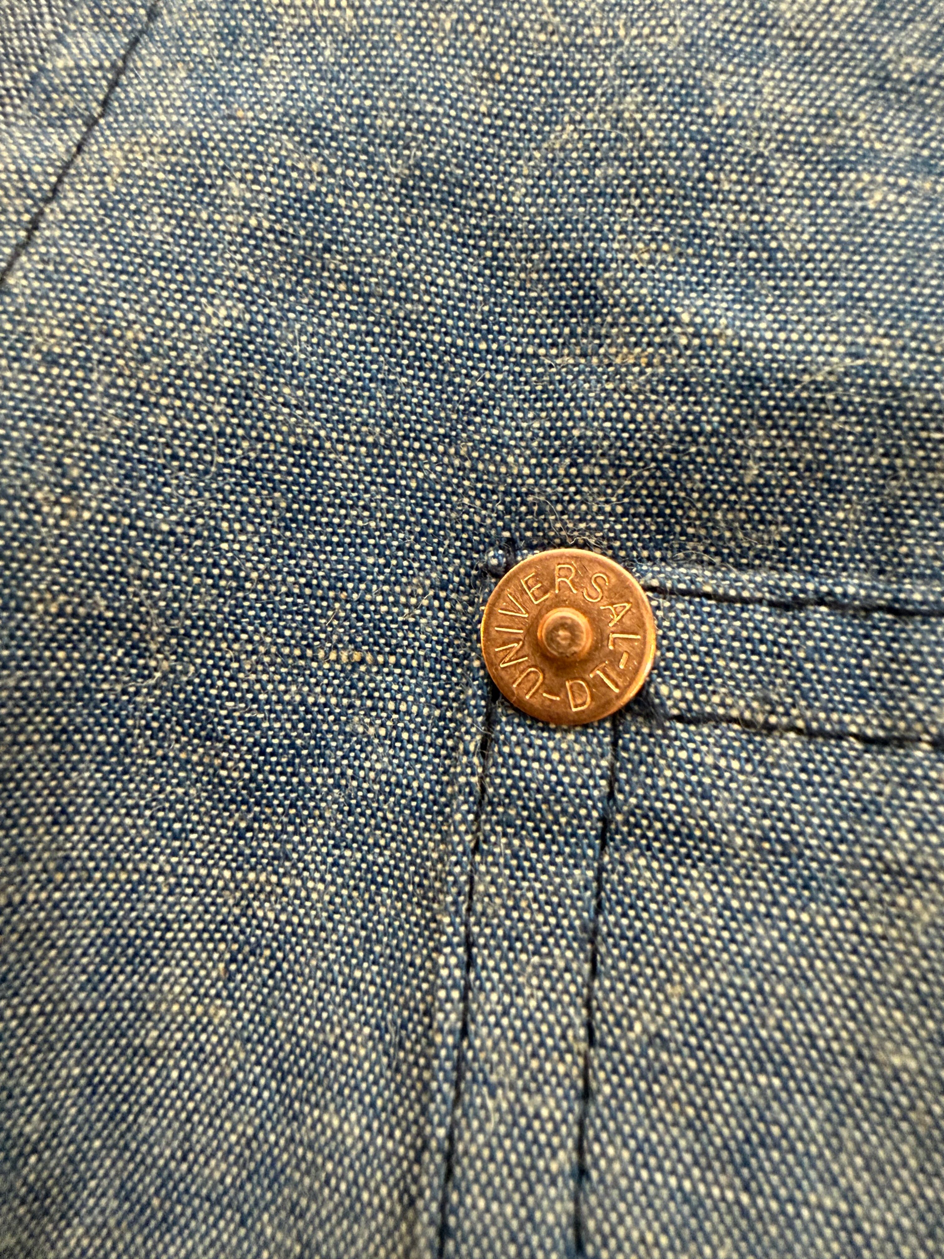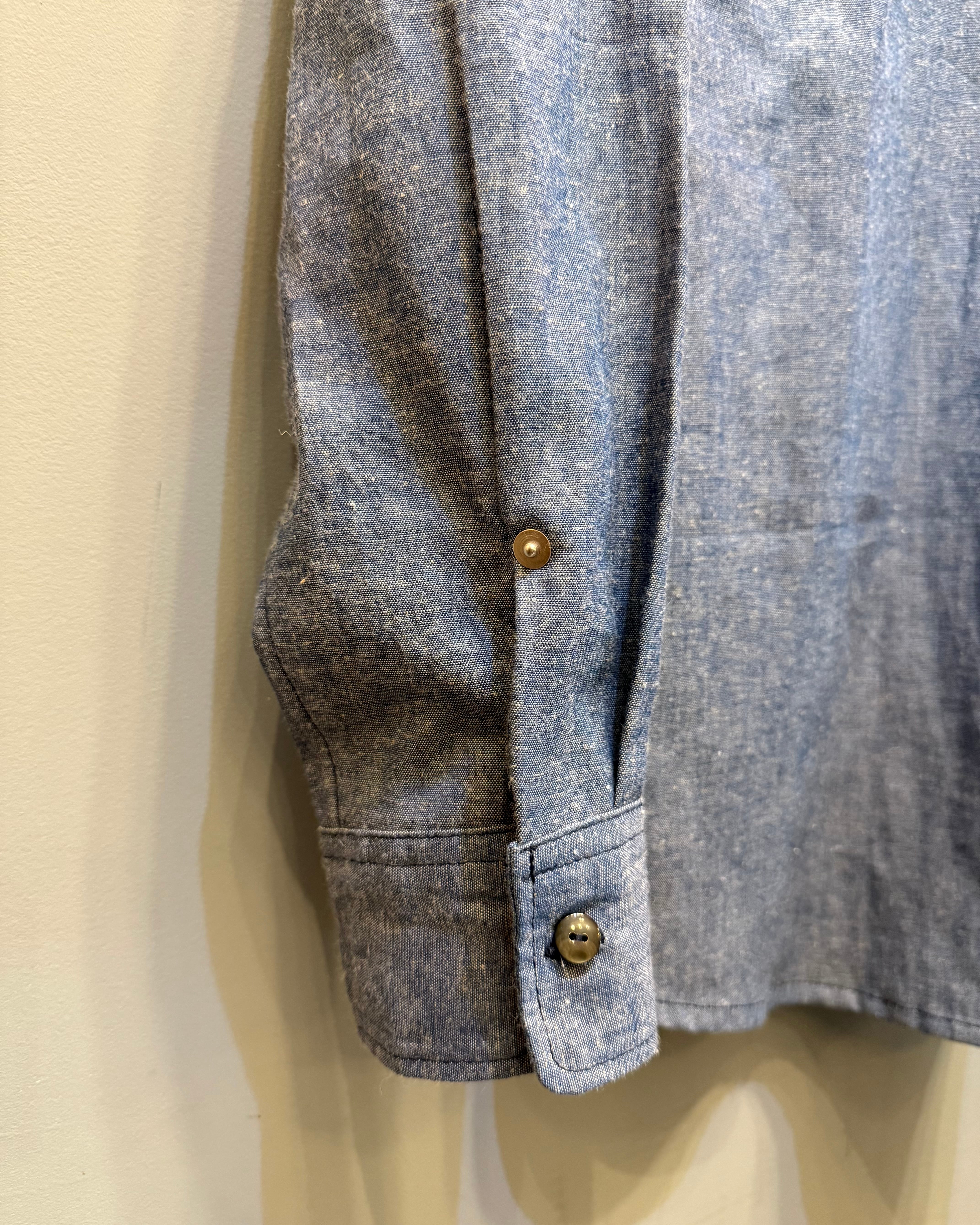 素材は5オンスの薄手シャンブレーを使用しています。両胸ポケット付き