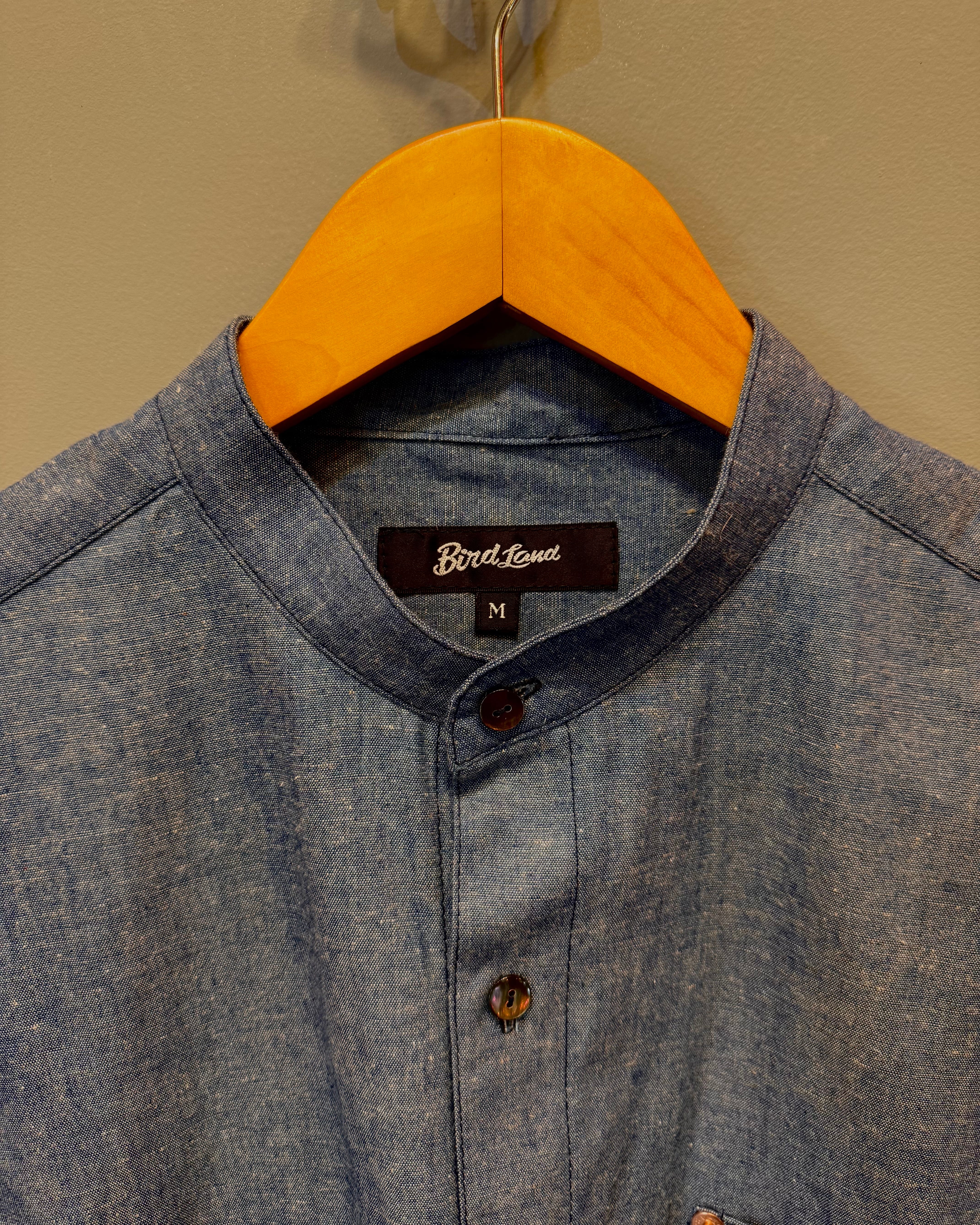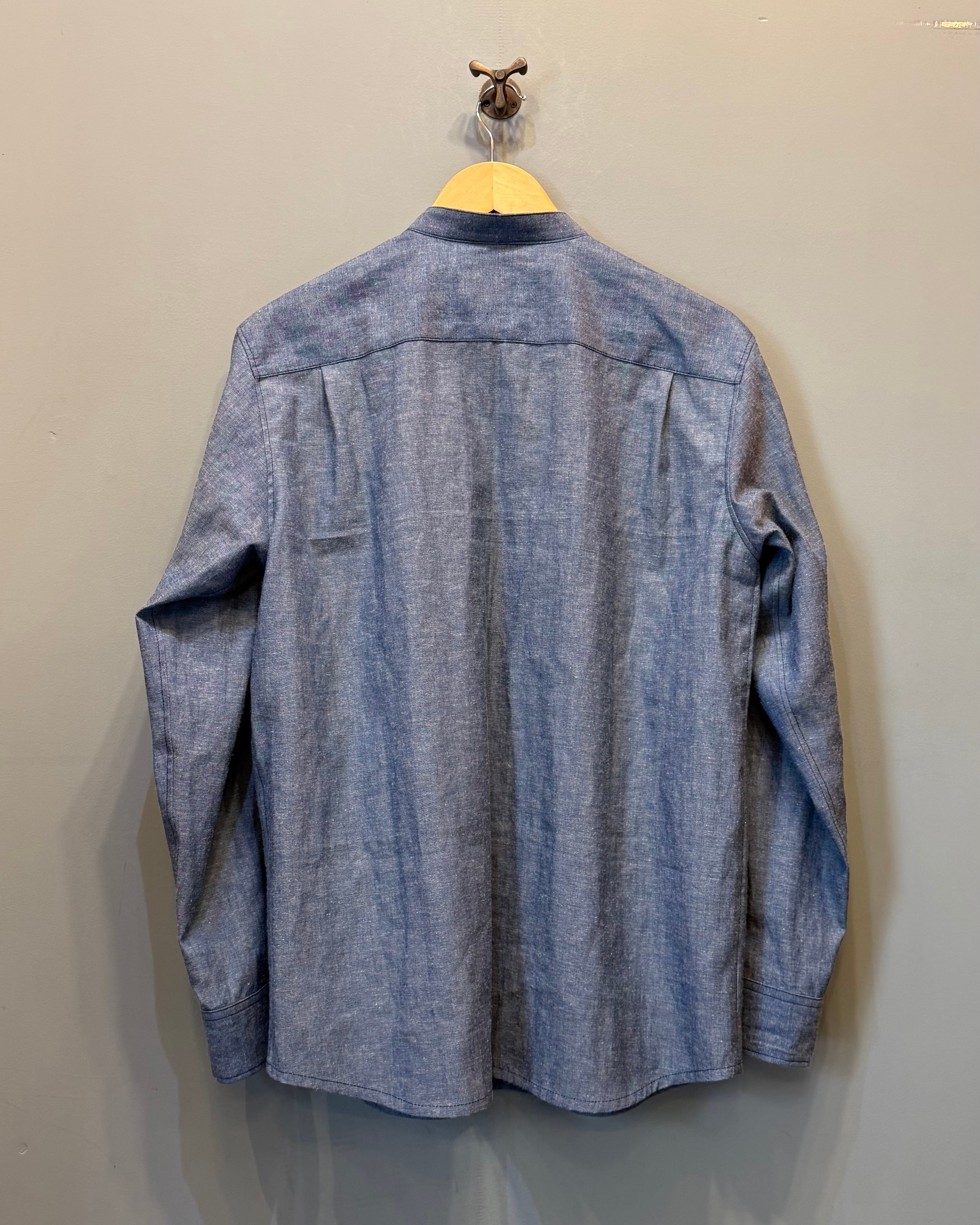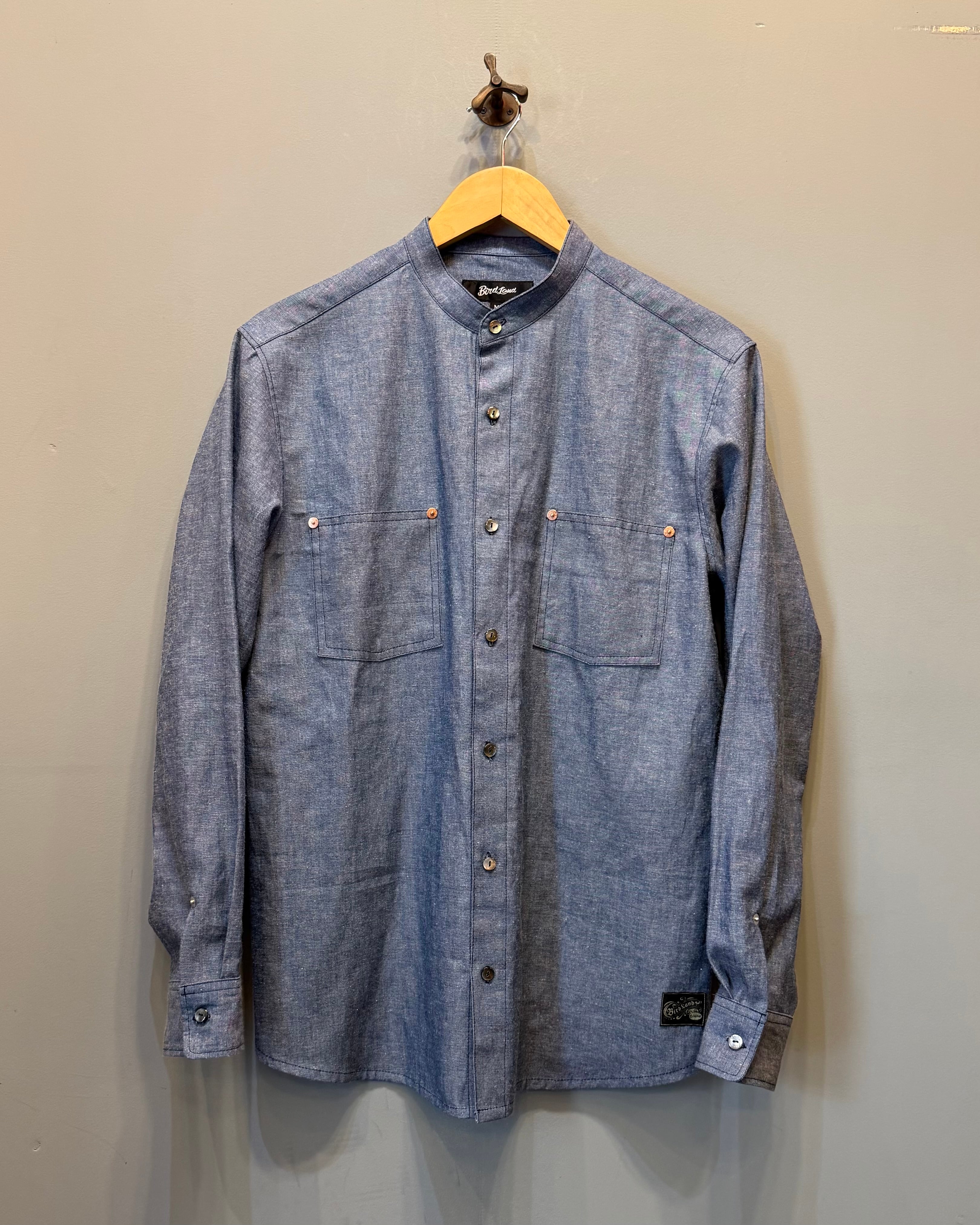 ワークスタイルの要素も取り入れながら、少しキレイめ印象に仕上げました。1920年代ではちゃんと作られた襟は手間が掛かり高価であった為、庶民のシャツはバンドカラー(スタンドカラー)が主流だったようです。当時は労働者階級のシャツだったわけですが、今見るとクラシックでオシャレな印象を受けます。