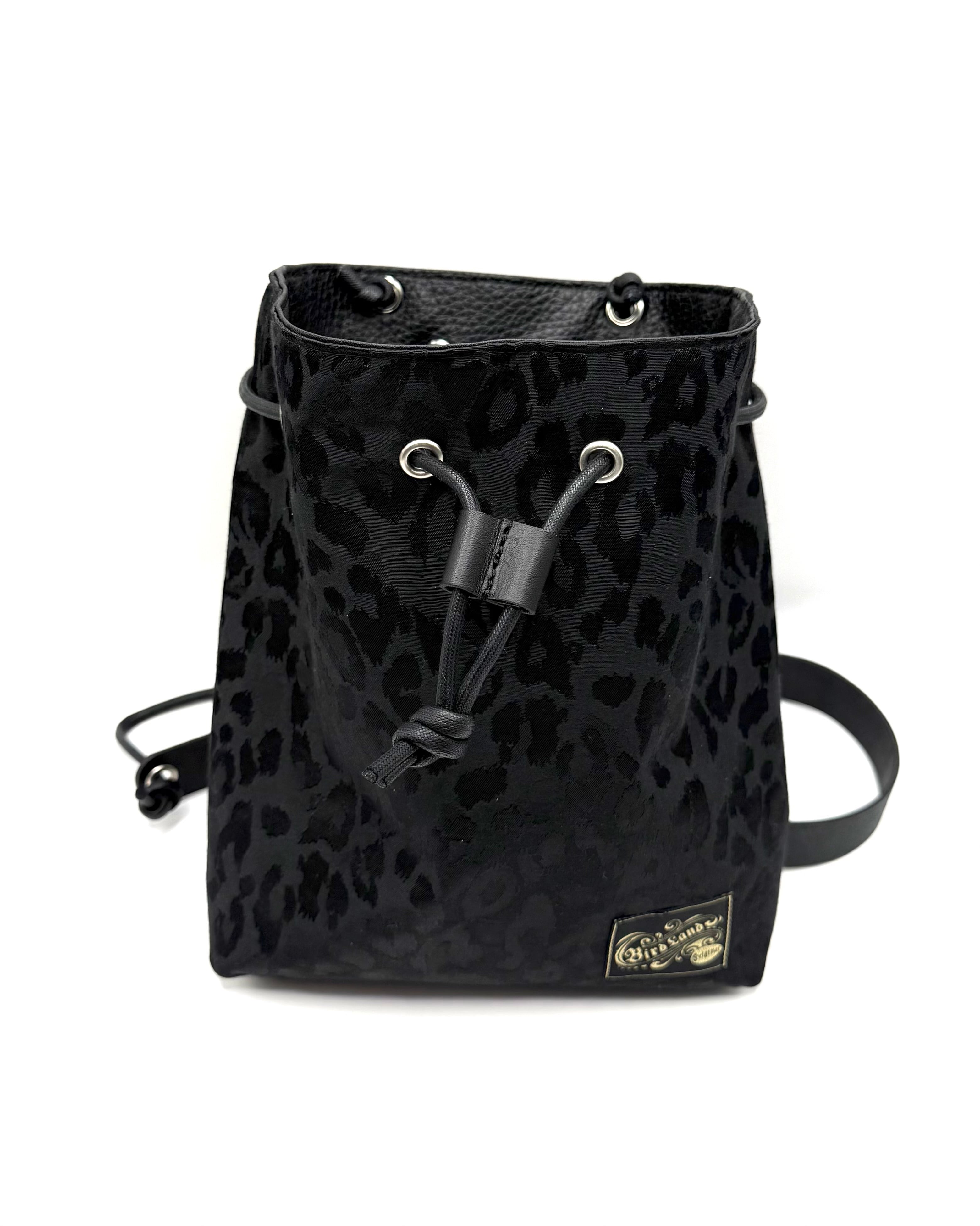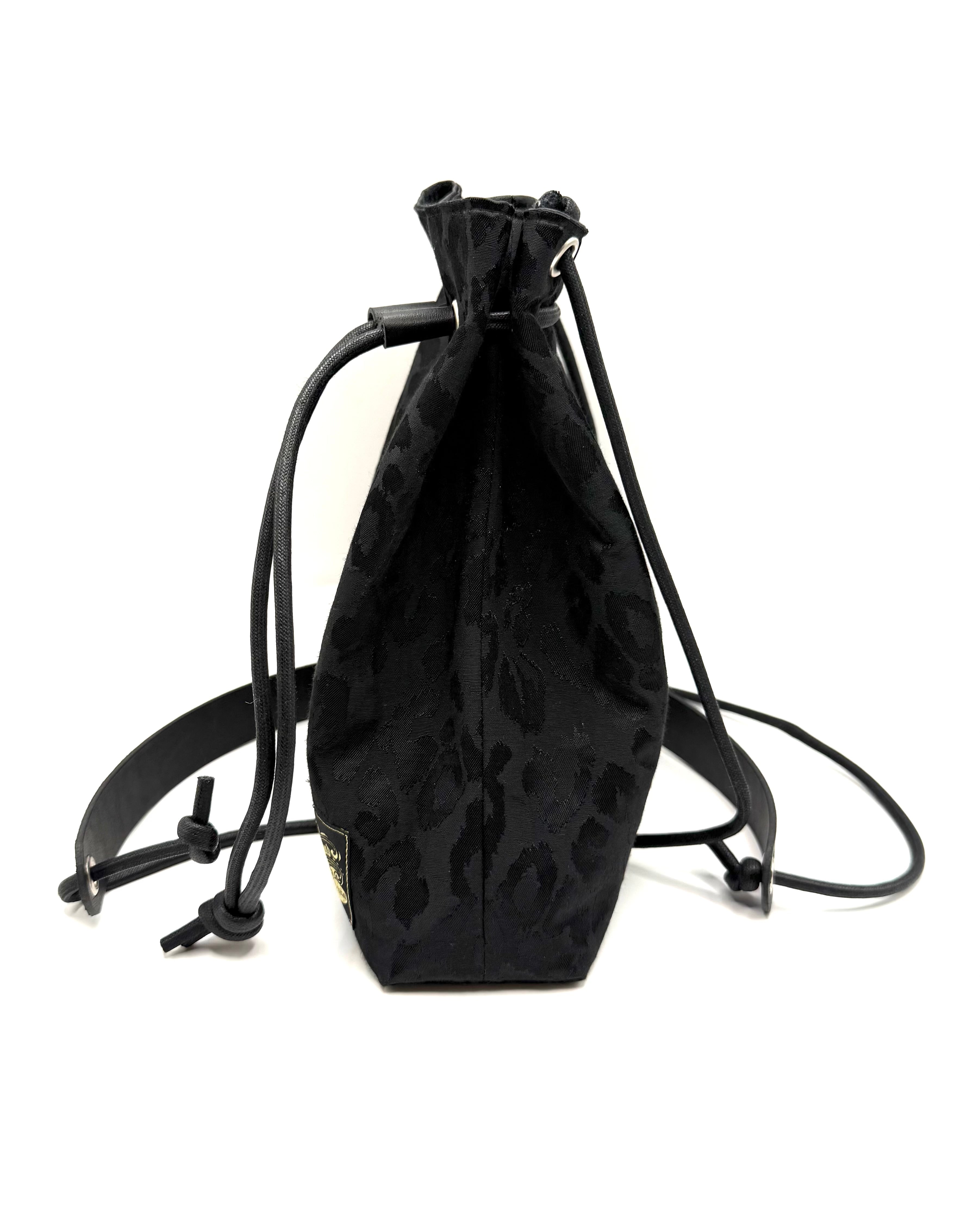 柄部分に光沢感のあるジャガード織のヒョウ柄生地で巾着を作りました。