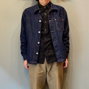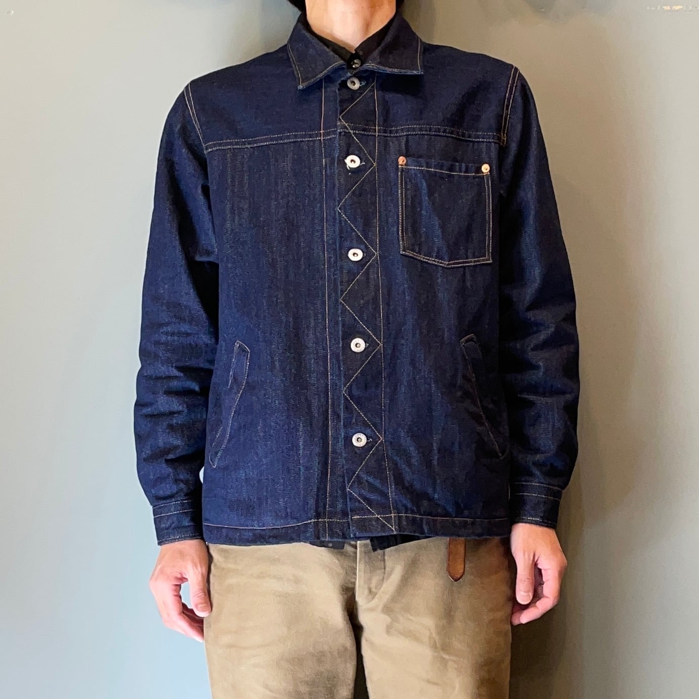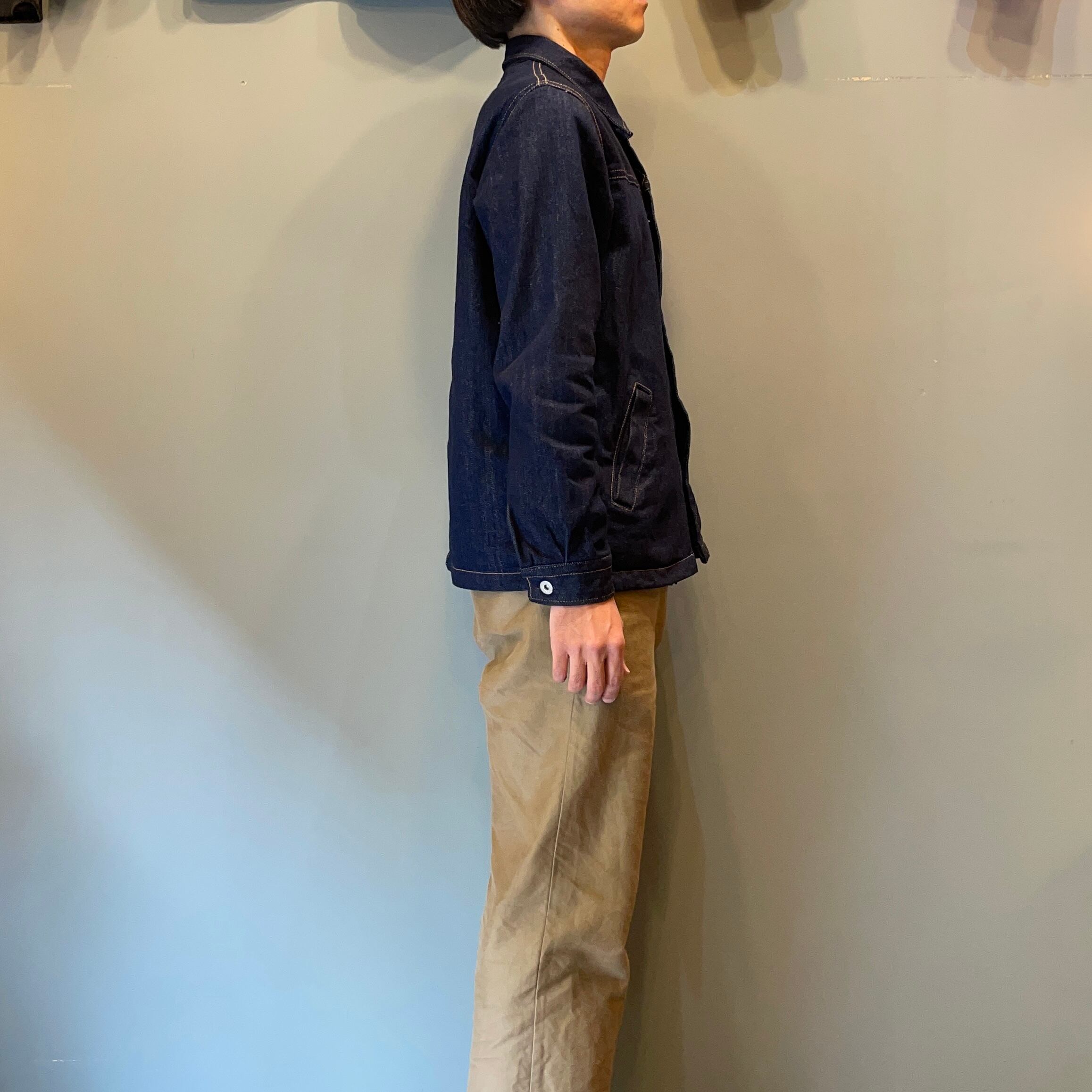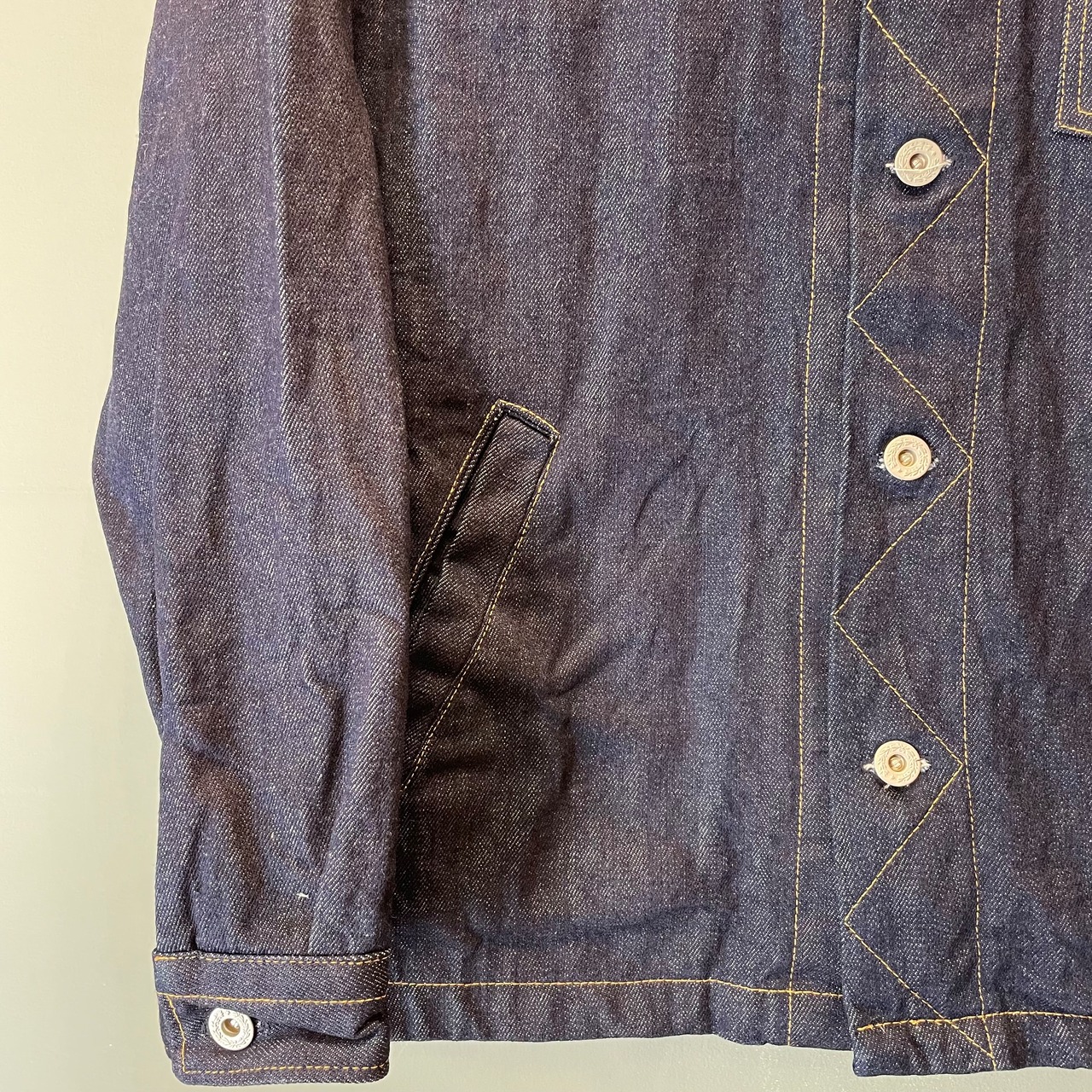 カイハラデニム(※)12オンスを使用。軽めな生地な上、洗いも掛かっていますので、厚手(13.5oz以上)のデニムジャケットとは比べ物にならないくらい、着やすいです。